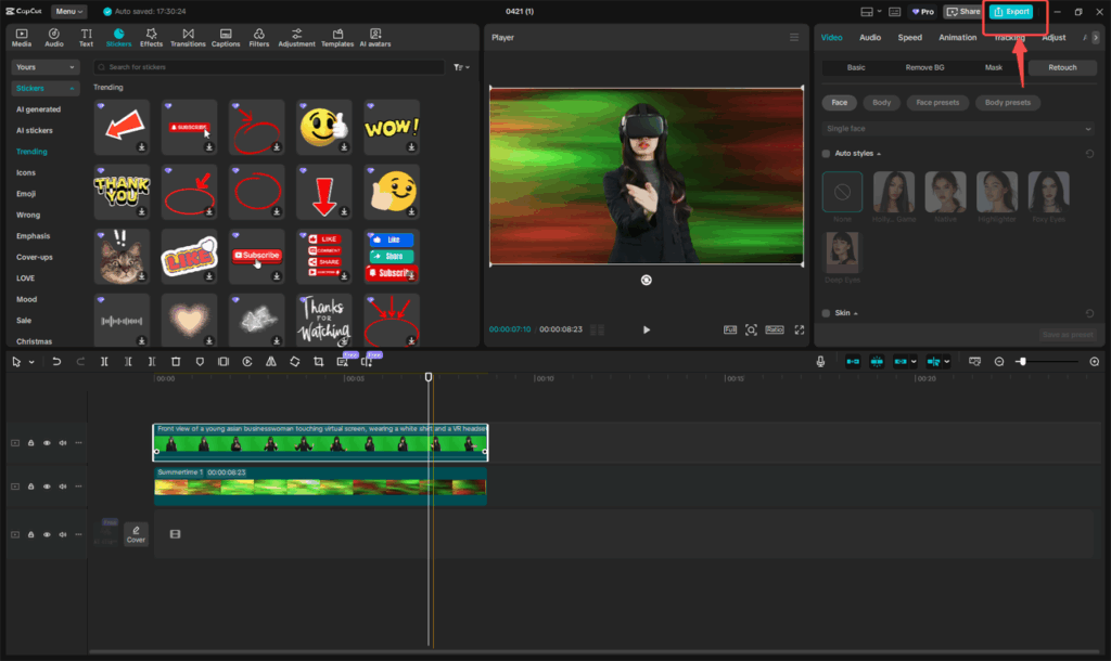 I frequently use CapCut to quickly generate polished video backgrounds for social and e-commerce projects. The Seedream 4.0 engine consistently produces clean, stylish backdrops from simple text prompts. Switching between video and photo-style workflows is seamless, and batch export saves me hours when handling multiple clips. I especially appreciate how the AI backgrounds integrate naturally with overlays and templates. Even on a mid-range laptop, rendering remains fast. CapCut’s combination of speed, flexibility, and affordability makes it my top choice for AI-assisted editing.