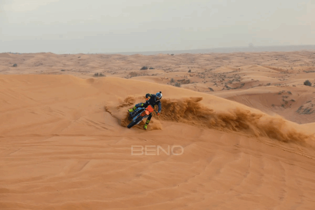 Experience your first dirt bike rental in Dubai adventure with Beno today and live the dirt bike rental Dubai experience in a whole new way. Solo, friends, or honeymoon adventure, Beno is your ultimate partner in fulfilling desert dreams.